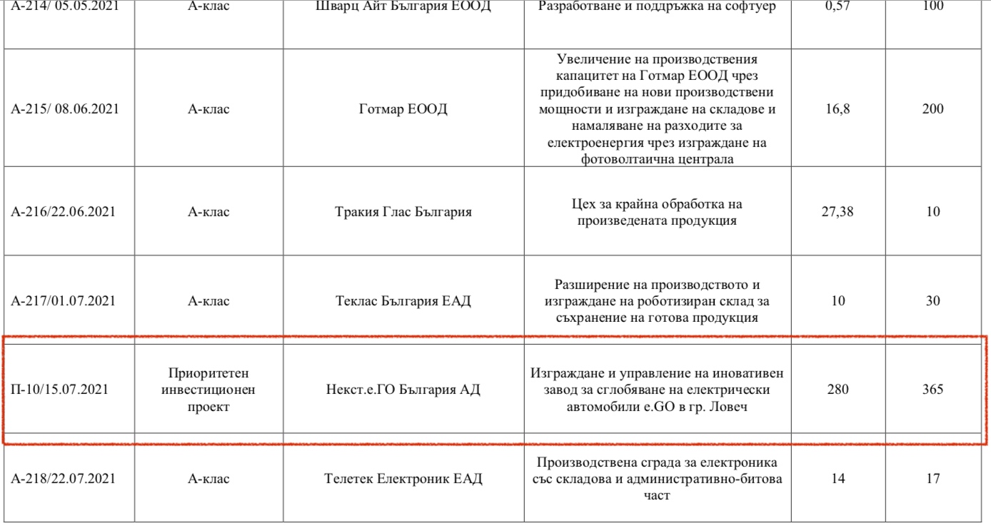 Както съобщи тогава Кирил Петков, “Правителството ще предостави общо 34 млн. евро държавна субсидия „в подкрепа на Next e.Go Mobile на три транша“.