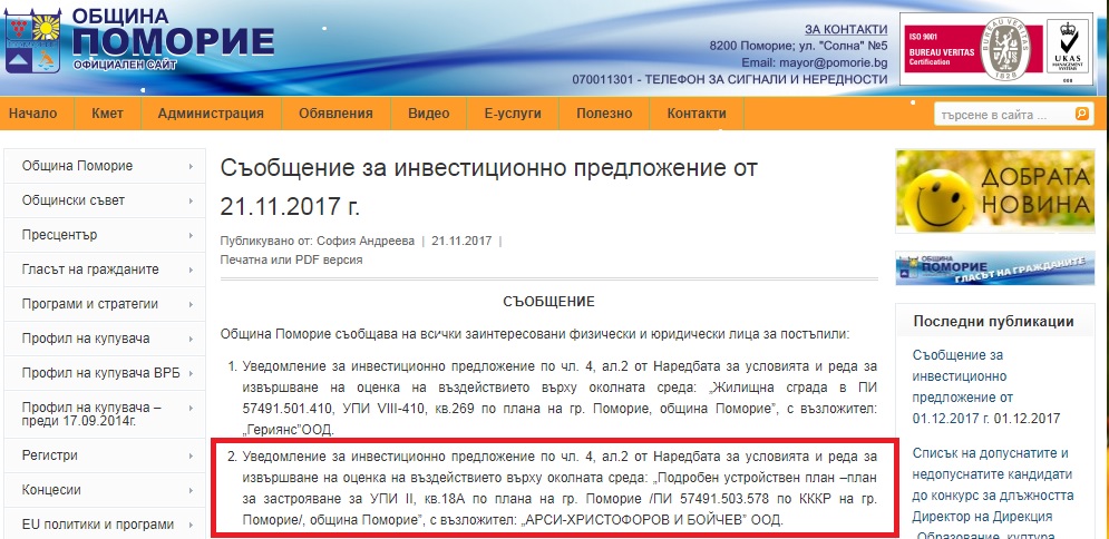 Поморийци, осъзнавате ли какво ще загубим, ако сме пасивни и бездействаме? Все още има начин да се противопоставим на това безумие. Времето за реакция е твърде малко, затова побързайте и уведомете за случващото се колкото се може повече ваши близки и познати. Срок за писмено възражение (някаква реакция, обжалване) – 14 дни, това е до 5.12.2017 г. (ден преди Никулден).