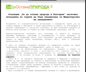 С две остри прессъобщения от миналата седмица Коалицията от природозащитни организации и граждански групи “За да остане природа в България” възрази срещу идеята Министерството на околната среда и водите (МОСВ) в следващото правителство на Кирил Петков пак да бъде оглавено от министър, излъчен от БСП, както и срещу това ведомството отново да бъде поверено на политик, а не на експерт.