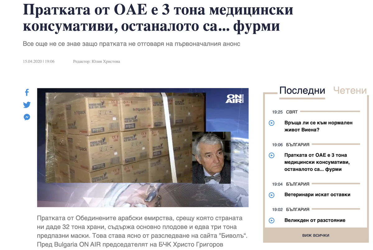 Пратката от Емиратите беше шумно рекламирана от властта като голям успех в борбата срещу коронавируса и никъде не беше споменато за фурми.