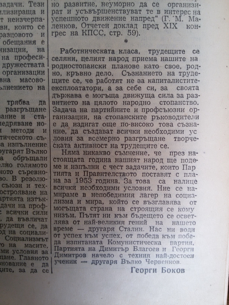Биволъ изследва архивите в Народната библиотека и Ви предлага подбрани статии, в които поцелуйчеството и блюдолизаческия “талант” на Боков са се разгърнали с пълната си сила. Няма материал на Г.Боков от времето, в който с патос да не е цитиран и възхвален Сталин, като върховен и единствен критерий и авторитет и на второ място българското му протеже, но върховен Вожд и Учител на сталинските изверги – Вълко Червенков.