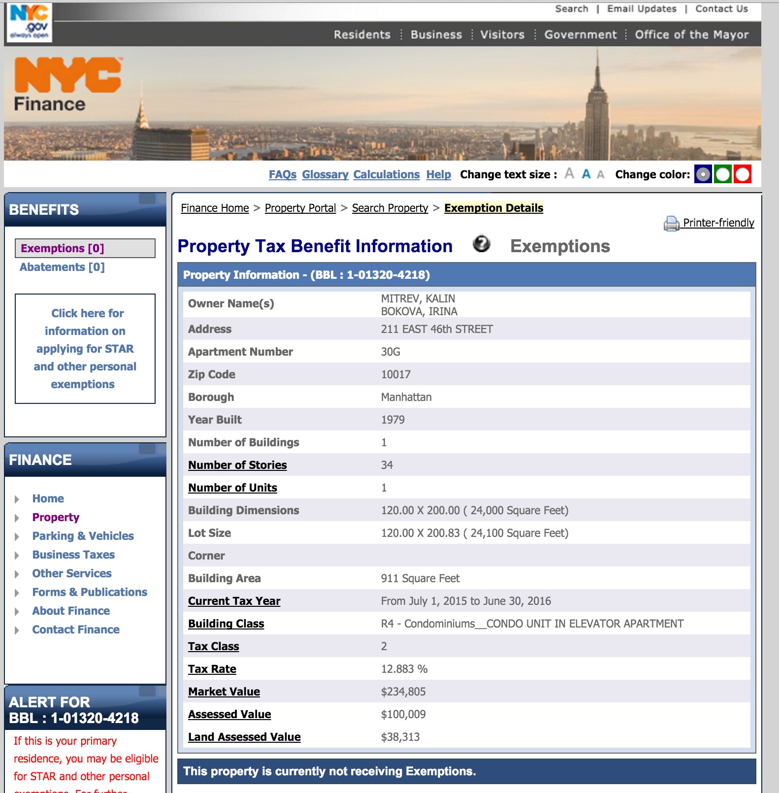 Така сумата от заплати и продажби на имоти на Ирина Бокова покрива цената на единия апартамент в Манхатън.