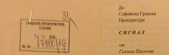 Според входящия номер, с който Биволъ разполага, сигналът е заведен в Софийска градска прокуратура под номер 17800/2016 на 15.11.2016 г.