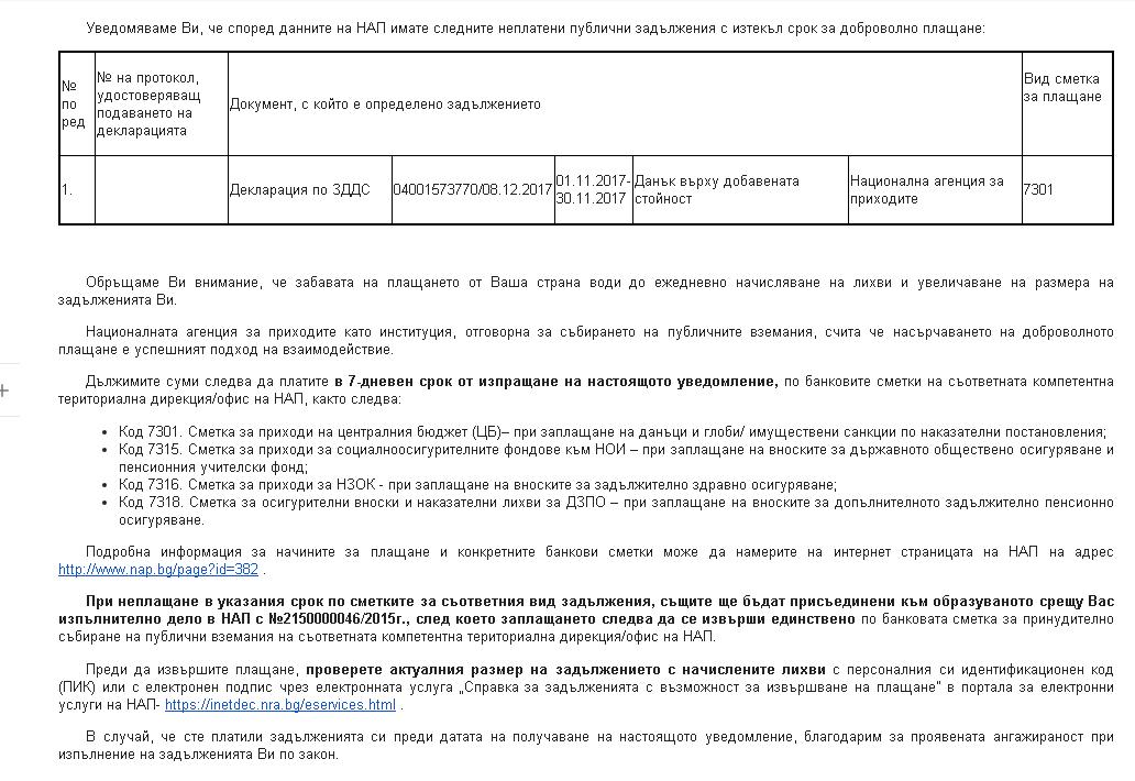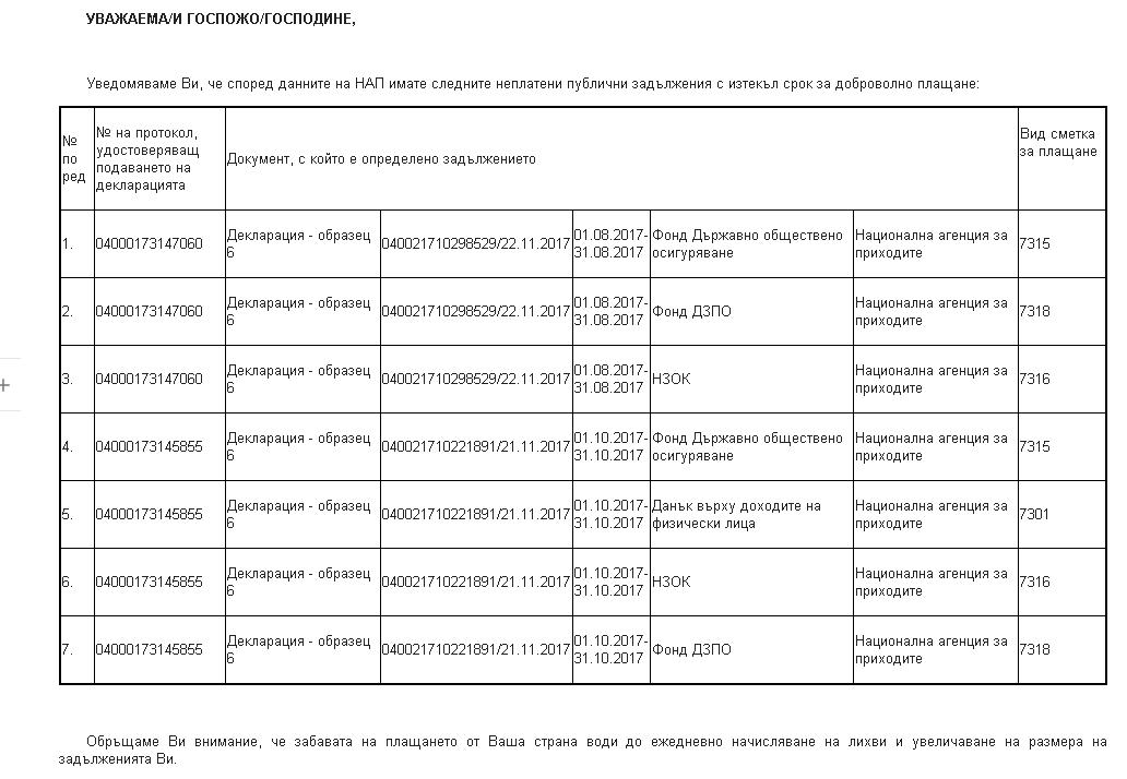 По-долу прилагаме извадка от официална кореспонденция на НАП до медия от кафеза за канарчета на Делян Пеевски. Заличили сме конкретните имена от съображения за коректност към източника ни на информация, но сме готови да валидираме данните и да предоставим нужната конкретна информация при необходимост.
