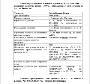 “Няма данни да е заемал други позиции, освен че е бил съветник на Владислав Панев в XLVIII НС. Подобни амбиции може да са мотив за организиране и манипулиране на вота”, гласи докладът.