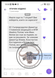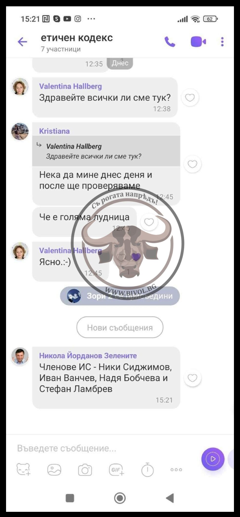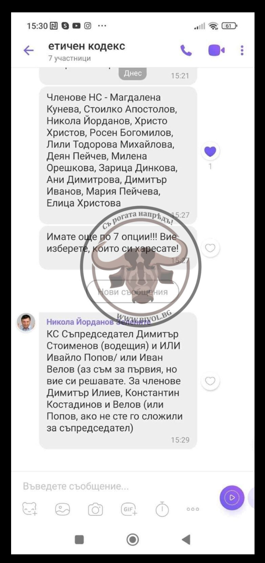 Според доклада, на проведеното през декември 2022 г. заседание на Националния съвет на ЗД (НСЗД) изтече информация, че Никола Йорданов е създал чат група: “Това се установи след объркване от негова страна и погрешно споделяне на информация в друга чат група, работеща по Етичния кодекс” (вижте долу).