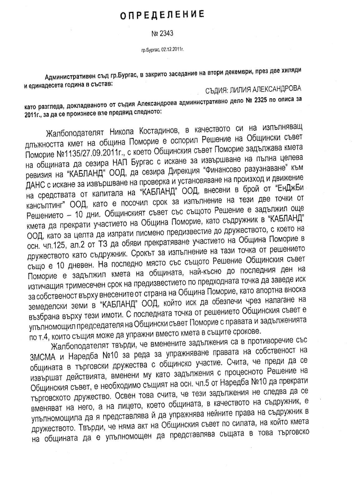 In 2011, the Pomorie Municipal Council made a firm decision to break the deal that was creating a real opportunity to steal more than 2,000 decares of municipal land and to serve the private interests of a handful of scammers. The decision of the Municipal Council was confirmed by the Burgas Administrative Court as legal, and then it had to be implemented by the mayor of the municipality.