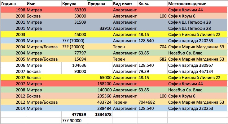 The family has invested this money in real estate – lots of real estate. Georgi Gotev has indeed noticed one our oversight. In our second publication, we have not included in the calculations of the family income an apartment of 128 square meters in Sofia, sold by Kalin Mitrev in 2014. But we have indicated it in the first publication on the subject. This is not intentional or biased; it was committed only because it turned out that there were really many apartments.