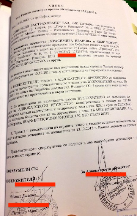 According to documents which Bivol has examined, Yavor Notev’s law office has earned more than BGN 100,000 during his lawmaker term from defending the DZI against the victims of road accidents.
