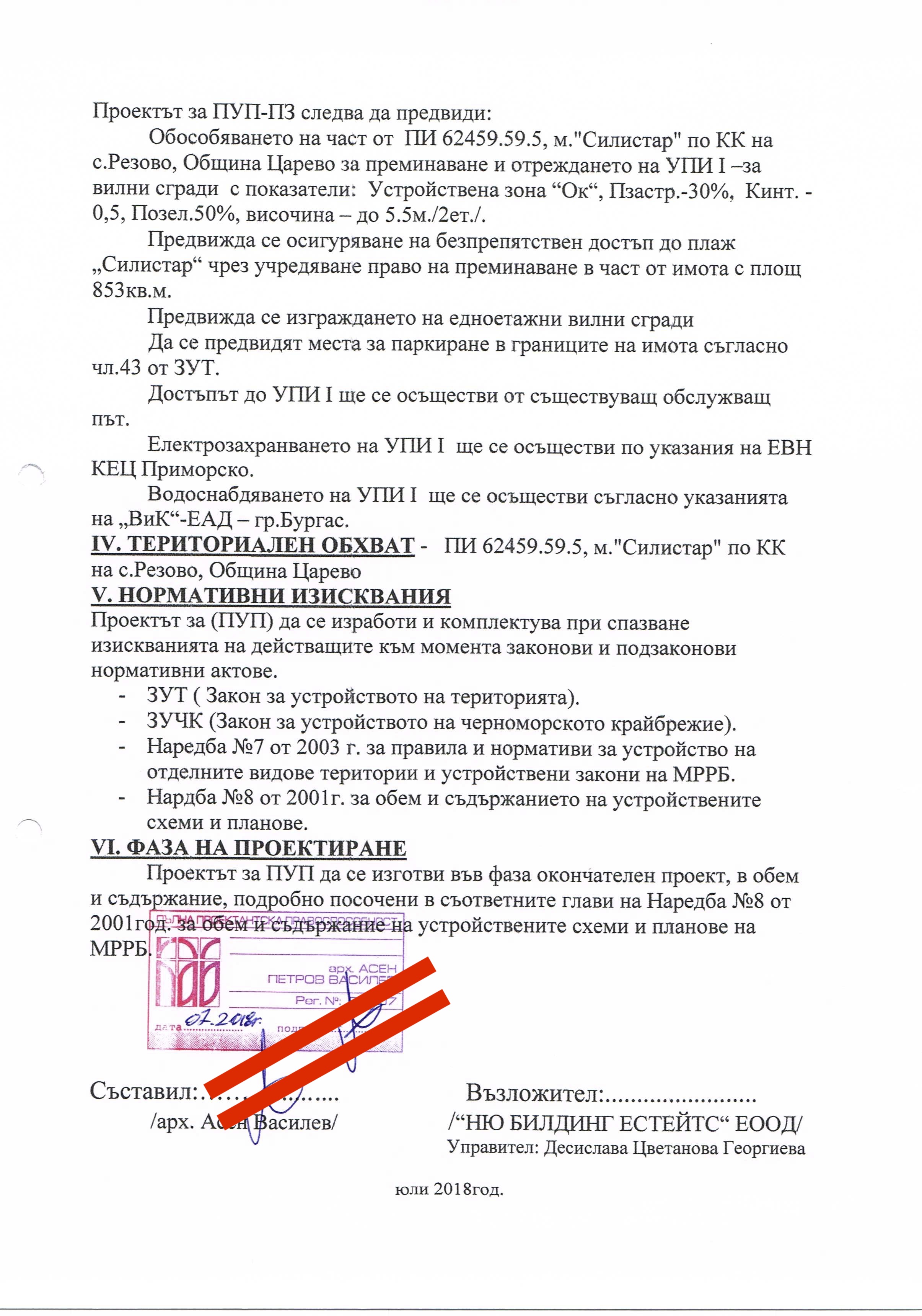 However, he was not asked about and did not volunteer to offer any explanation on the approval given by the RIEWs Burgas, through its inspector Pavlina Paraskova, to the plan to build a vacation village.