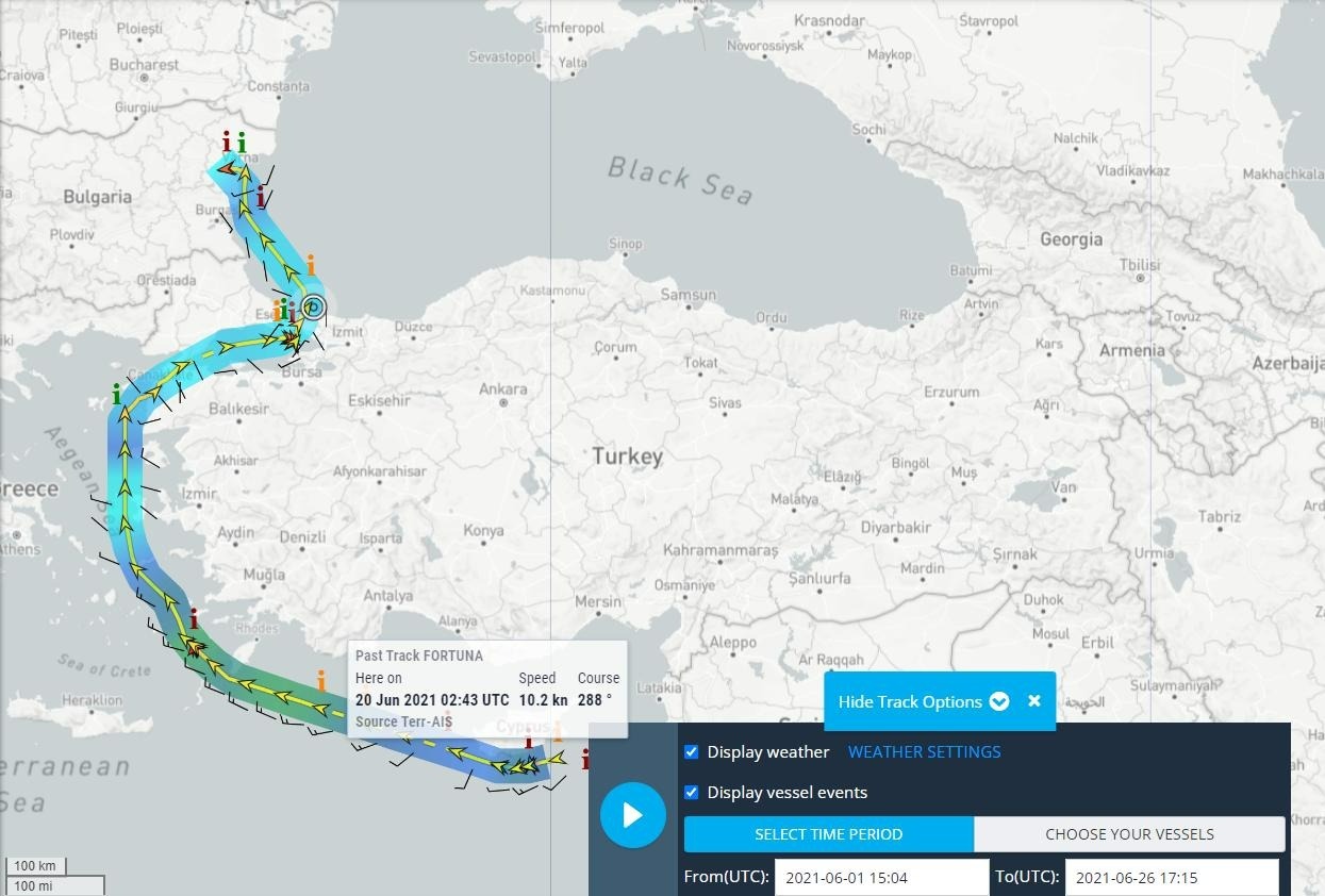 The Fortuna freighter delivering phosphates to Varna on 25 June 2021 (Source: OCCRP)
