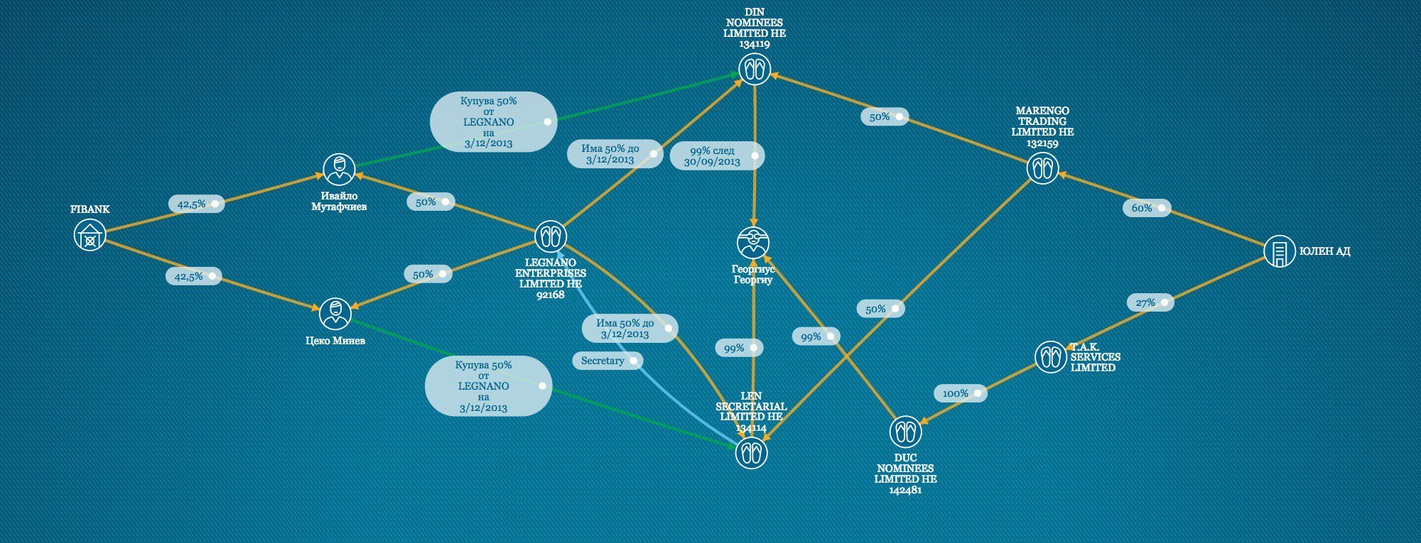 According to official documents in the Cyprus’ Commercial Register, Georgios Georgiou, a Cypriot national, is the owner of the offshore companies Marengo Trading and T.A.K. Services, which hold 87% of the shares of concessionaire “Yulen”. He controls Marengo and T.A.K through three other offshore companies: Din Nominees, Duc Nominees and Len Secretarial.