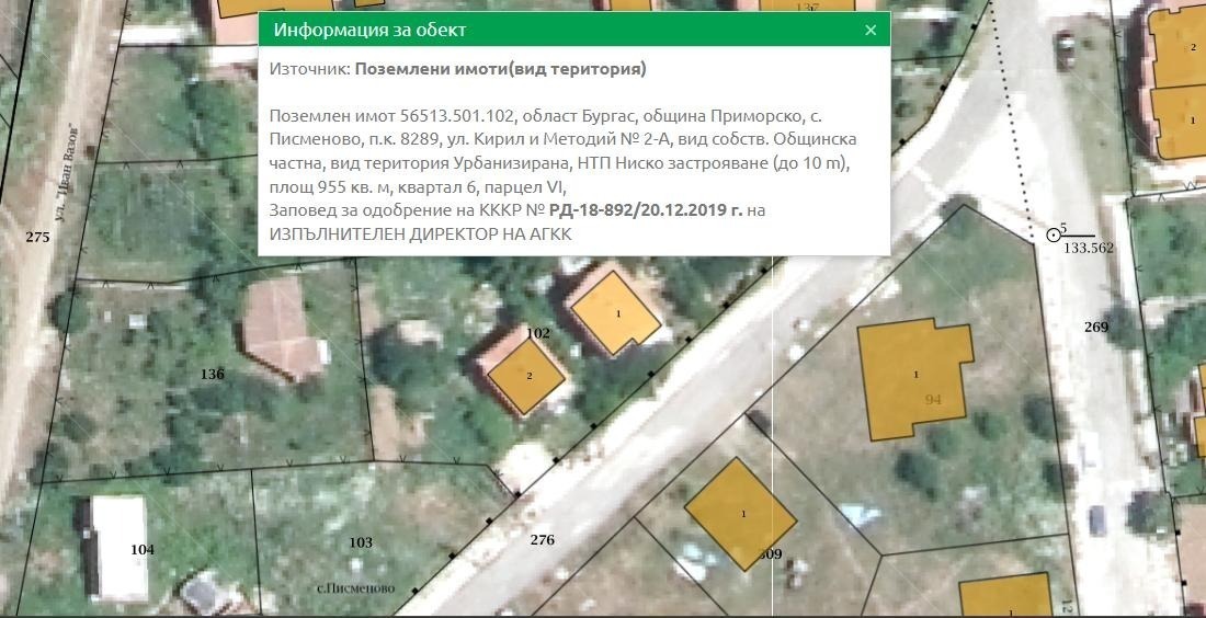 Къщата на Валентина Желева в с. Писменово (скрийншотове: GoogleView и кадастър)