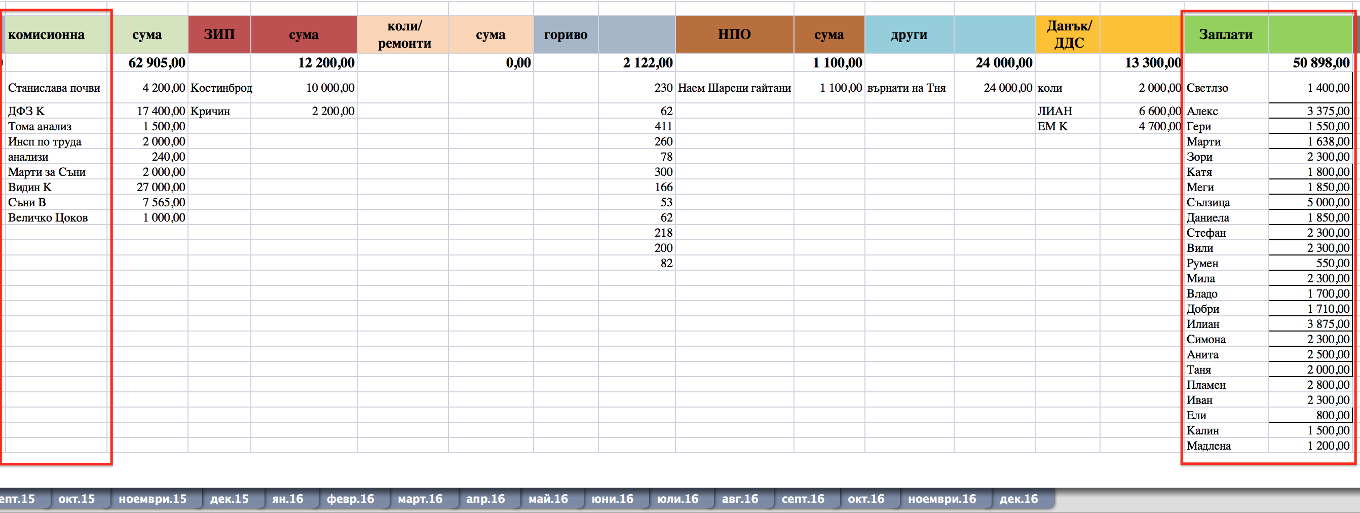 В графата “Заплати” на тайното счетоводство на консултантите, тези лица фигурират с малките си имена: Гери, Добри, Светльо, Анита, Иван и т.н.