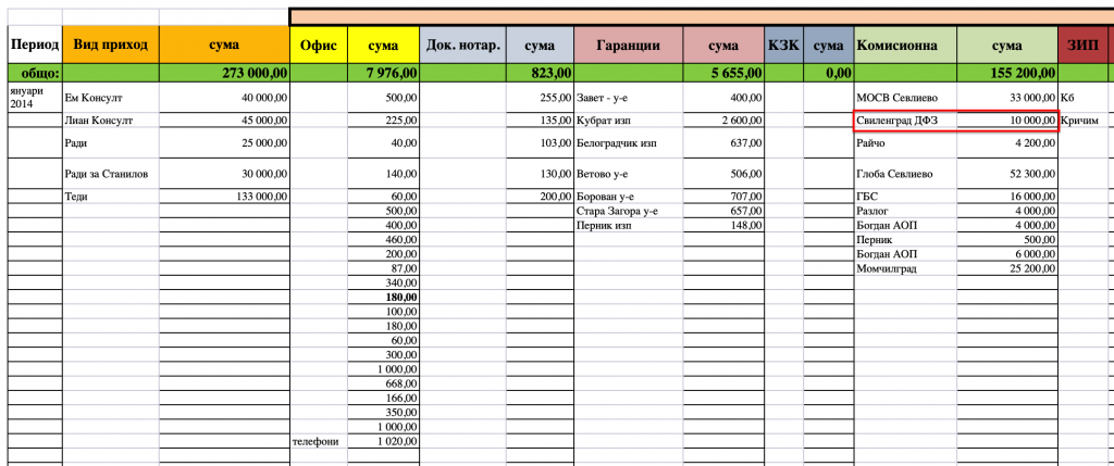 Финансираният от ДФЗ проект е скромно отбелязан в таблиците с комисионните, които консултантите са връщали като ресто на официални лица и отговорни служители. През януари 2014 г. е платена комисионна от 10 000 лв. на “ДФЗ Свиленград”