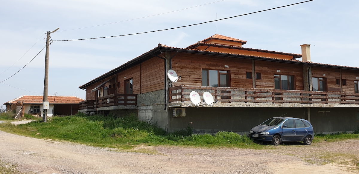 Отдалеченото от магистрали и клетки на мобилни оператори село Сакарци до Тополовград, родния град на Евелин Банев – Брендо, крие една от най-интересните къщи за гости, която изглежда по-скоро като среден по големина хотел на фона на завладяваща гледка към меките възвишения на Сакар планина.