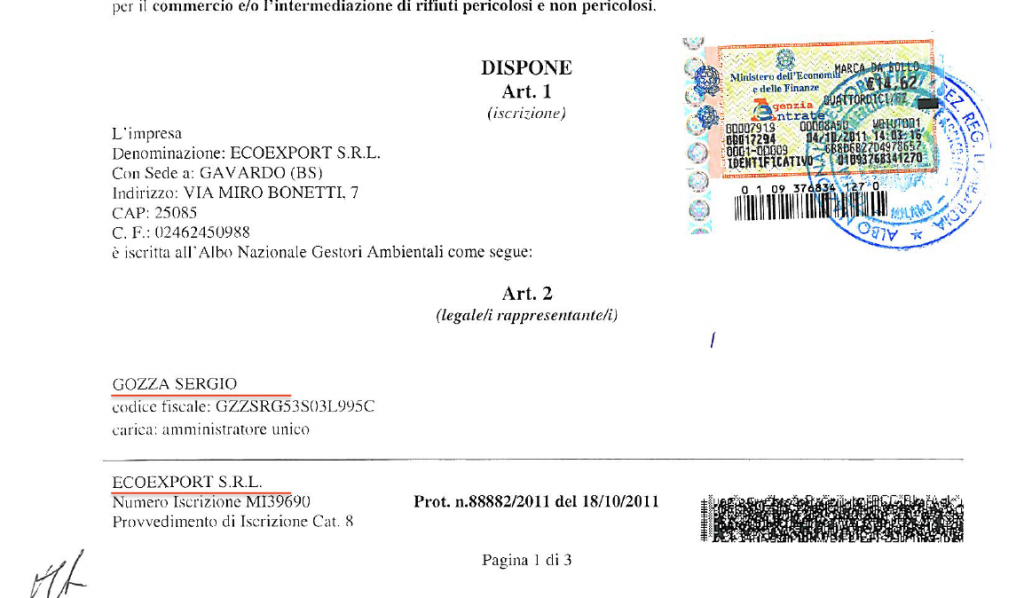 Eco Valsabbia и Ecoexport са регистрирани на един и същ адрес, имат едни и същи телефони и имейли, а Серджо Гозза е управител и на двете фирми.