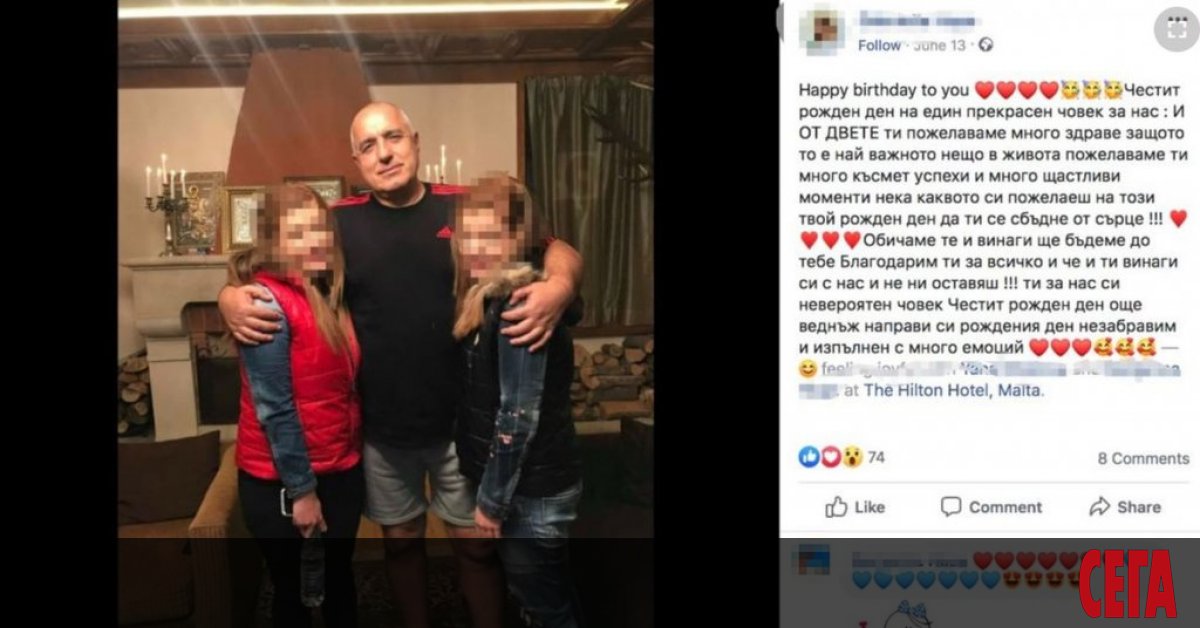 Надписът придружава снимка, на която тя и сестра ѝ – Гергана, се намират в дома на тогавашния премиер Бойко Борисов. Домакинът е прегърнал момичетата и позира пред камина (позната от снимки, които Бойко Борисов е публикувал от дома си).