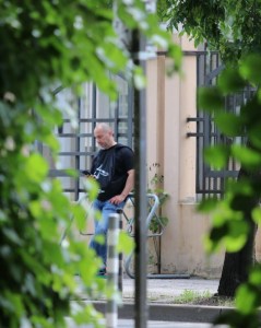 Бодигард чакаше Лазаров пред сградата на СГП на ул. "Черковна" (Снимки: Светломир Стоянов ексклузивно за "Биволъ")