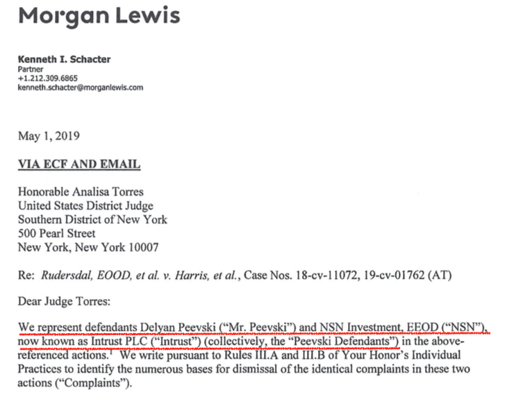 Отделно от това, Пеевски е наел една от най-скъпите адвокатски кантори Morgan Lewis, за да защитава интересите му в делото за източване на сметки на американска фирма в ПИБ, заведено по прословутия Закон RICO /Racketeer Influenced and Corrupt Organizations/, във Федералния съд в Ню Йорк срещу Пеевски, ПИБ, БНБ и Булгартабак.