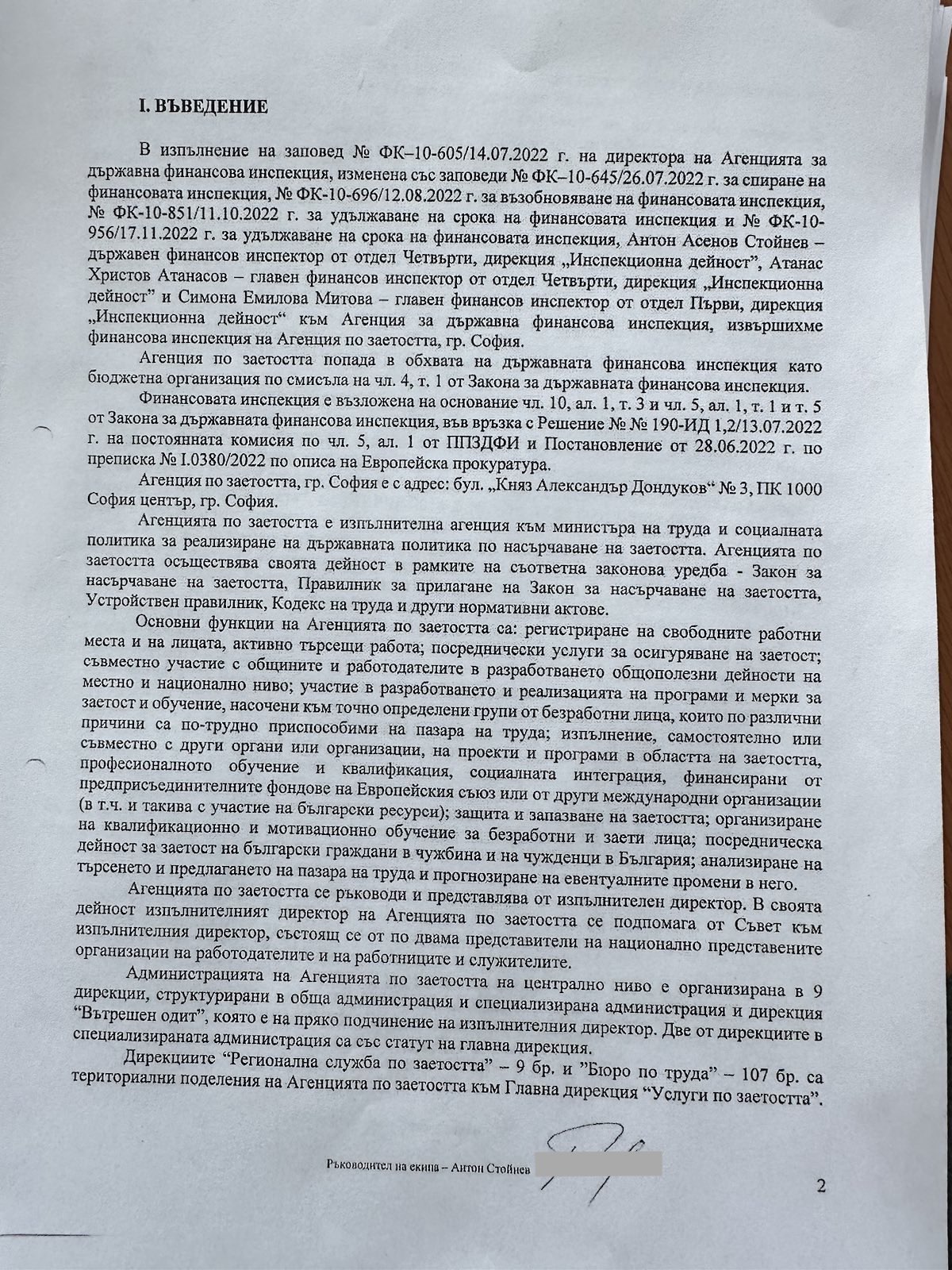 Независимо от тази нормативна възможност, настоящият ръководен екип на Министерството на труда и социалната политика работи OLAF съвместно, наблюдава и подпомага дейността на Агенцията по заетостта и конкретно на нейния изпълнителен директор повече от 5 месеца. В този период Агенцията по заетостта не предприе необходимите действия за бърза организация, мобилизация и координация между отделните нива и звена и не предприе адекватни действия на промените в търсенето и предлагането на труд, използването на финансовите инструменти, планирани в Плана за възстановяване и устойчивост за развитие и модернизиране на своята дейност.