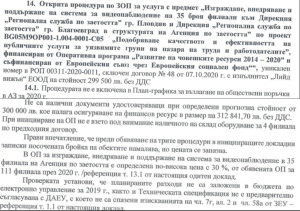 “Сиском инженеринг” – видеонаблюдение, 355 хил. лв., стр. 69 договаряне без предварително обявление с цел Извънгаранционен поддръжка на видеонаблюдение.