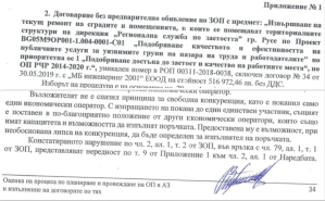 – директно възлагане, в което е допуснат само 1 участник – за огромни суми над 100 000 лв.;