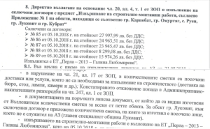 – несретни и подправени протоколи за прием на извършената работа. Списъкът с нарушенията е огромен, като се допшълва от ревизорите с множество случаи на: