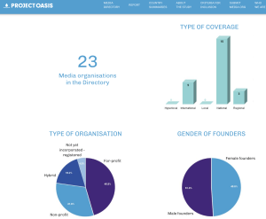 Project Oasis обобщава 540 медийни профила, изготвени от 34 изследователи. Организациите отбелязани в тази карта на дигиталните медии варират по размер, от малки инициативи с екипи, ръководени от доброволци, до големи платформи с над 10 милиона евро годишен приход. Екипът е изготвил и доклад, който включва тенденции и информация за устойчивостта на медиите, тяхното географско покритие, медийни иновации и свобода на пресата в цяла Европа.