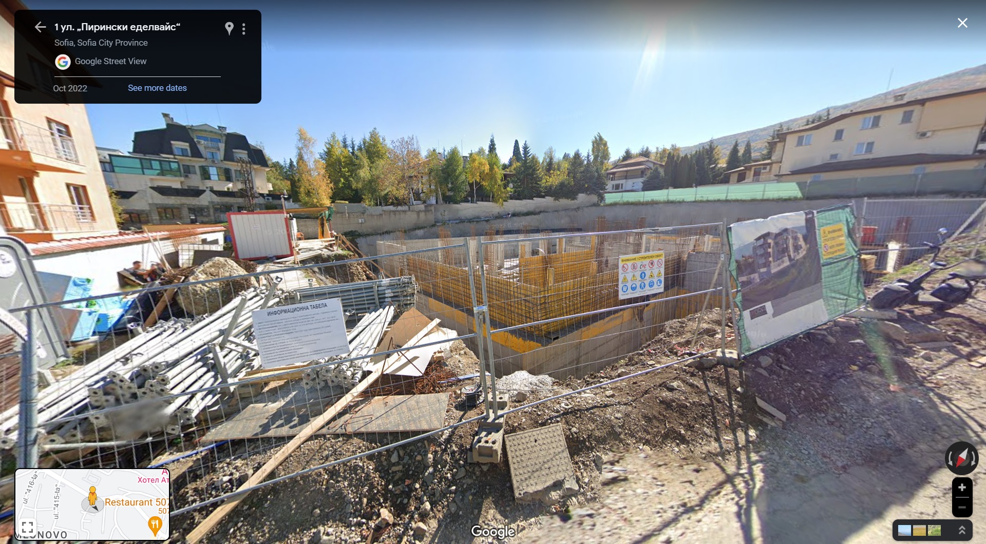 Без да се бави, Иксора вади разрешително за строеж на многофамилна жилищна сграда с фитнес и подземни гаражи с РЗП 1426 кв.м. То е датирано от 06.06.2022 г.Строителните работи започват още същата година, както се вижда от Google Street. През октомври 2022 г. основите на бъдещата сграда вече са налети.