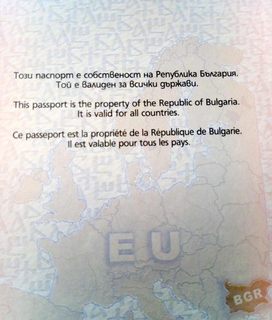 За сравнение ето какъв е текстът изписан на гърба на корицата на дипломатическите паспорти: