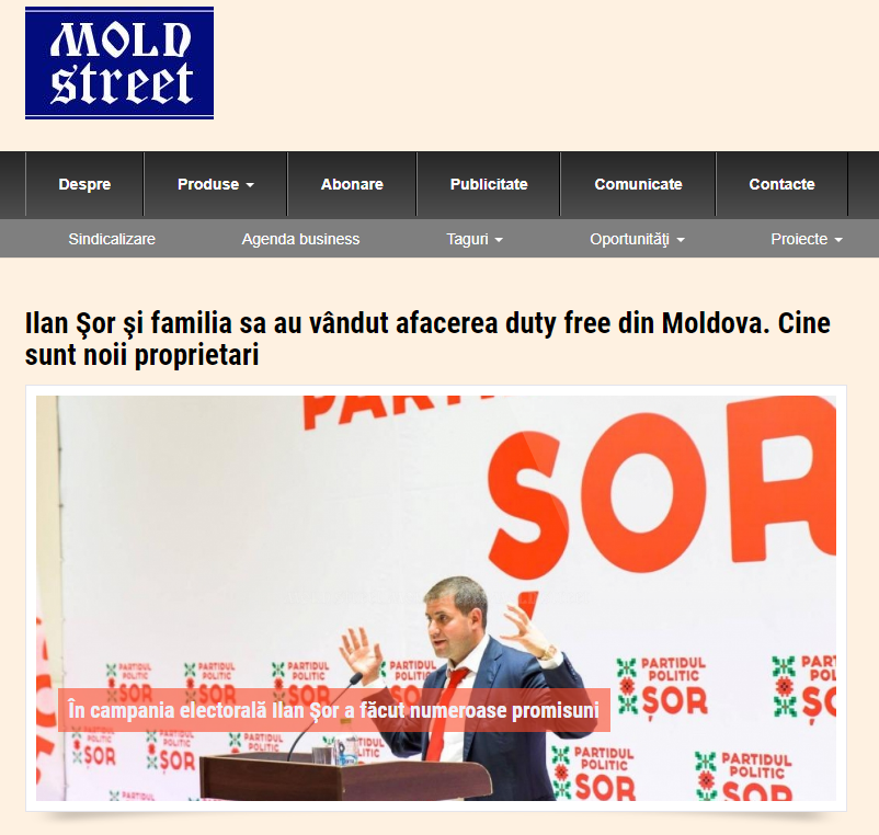 Лидерът на молдовската партия “ȘOR” (“Шор”), молдовско-руски олигарх Илан Шор е продал 12 магазина тип duty-free на българския предприемач Марко Стефанов Тодоров. За тази сделка на депутата и доскорошен кмет на молдовския град Орхей (Оргеев) писа в сряда молдовският сайт Мold-street. Българинът очевидно е подставено лице, защото няма опит в този бранш, а фирмите му в България имат многобройни банкови запори.