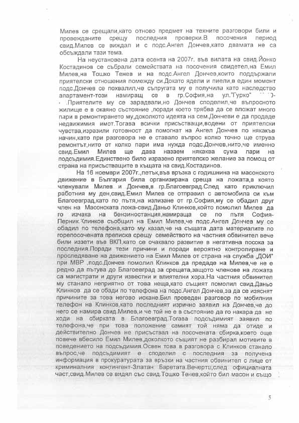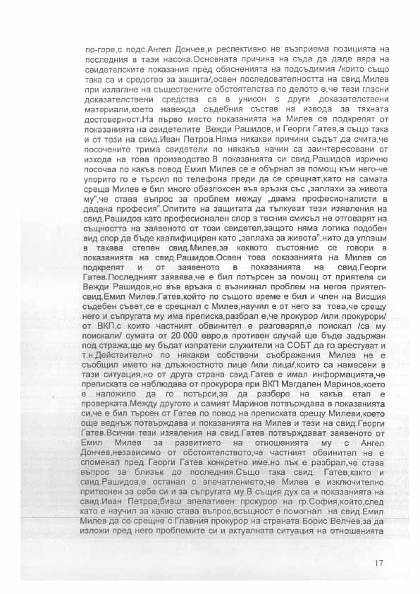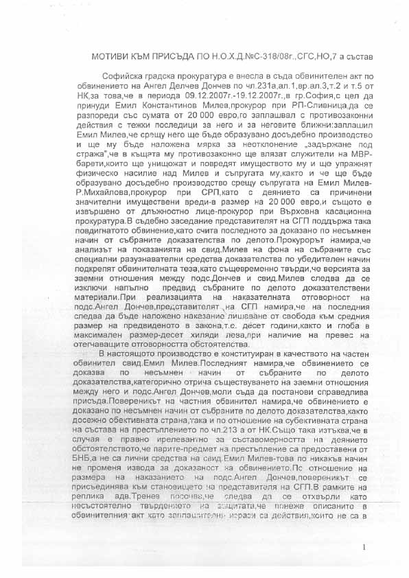 Из засекретените мотиви на съда по присъдата на бившия прокурор от ВКП Ангел Дончев, осъден на 3 години условно за принуда. Документът е от сайта Balkanleaks