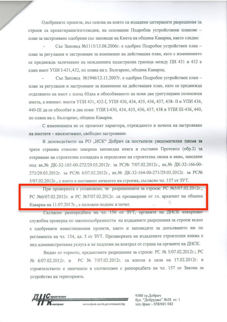 Архитектът на община Каварна Камен Жейнов (на снимката от профила му във Facebook) е презаверил три разрешителни за строеж на 11 юли 2017. На 21 юли Нено Димов подписа временна заповед за обявяване на защитената зона. Така на Калиакра вече е забранено да се строи, но не и за ортаците на Суджука. В заповедта е предвидено изключение за съществуващи разрешителни за строеж.