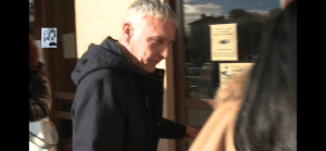 бившият управител на „Бул био“ пристига с тъмни очила и каскет, нахлупен до очите. И се опитва да се скрие от другата страна на един каменен блок на паркинга пред Съда.
