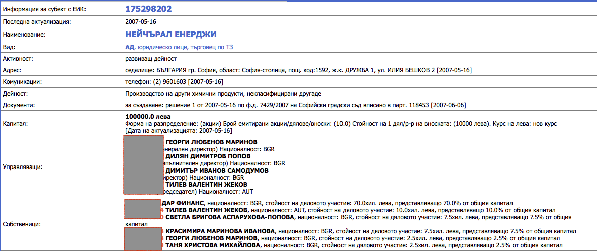 Сред записалите нови акции се открояват едни 39 милиона лева на дружеството “Марина Кейп Пропъртис”. То е собственост на бившия директор на “Слънчев Бряг” АД Малина Стратиева, пряко свързана с бившия оръжеен търговец и шеф на СД на курортния комплекс Младен Мутафчийски /сега покойник/, както и на съпругата на бившия министър на НДСВ и също бивш шеф на СД на морския курорт – Мирослав Севлиевски – Александра.
